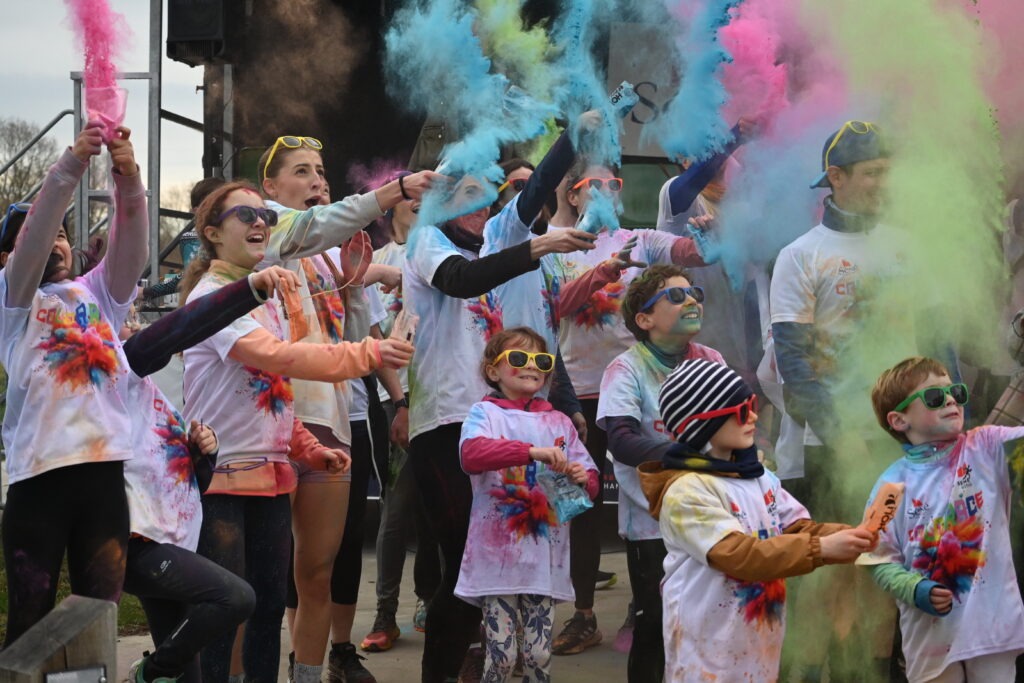 Les athlètes ont reçu la poudre de peinture à des endroits stratégiques mis en place par l’organisateur