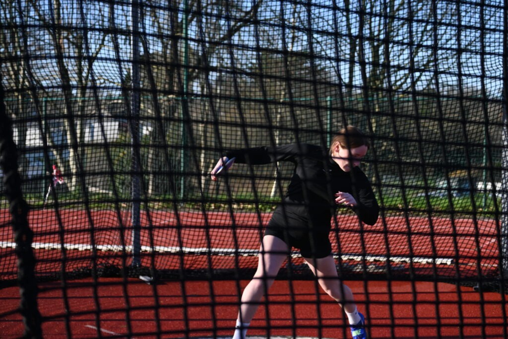 Nora Glatigny (Cadette) participait au Meeting de lancers Longs à Quéven Samedi 13 Décembre.